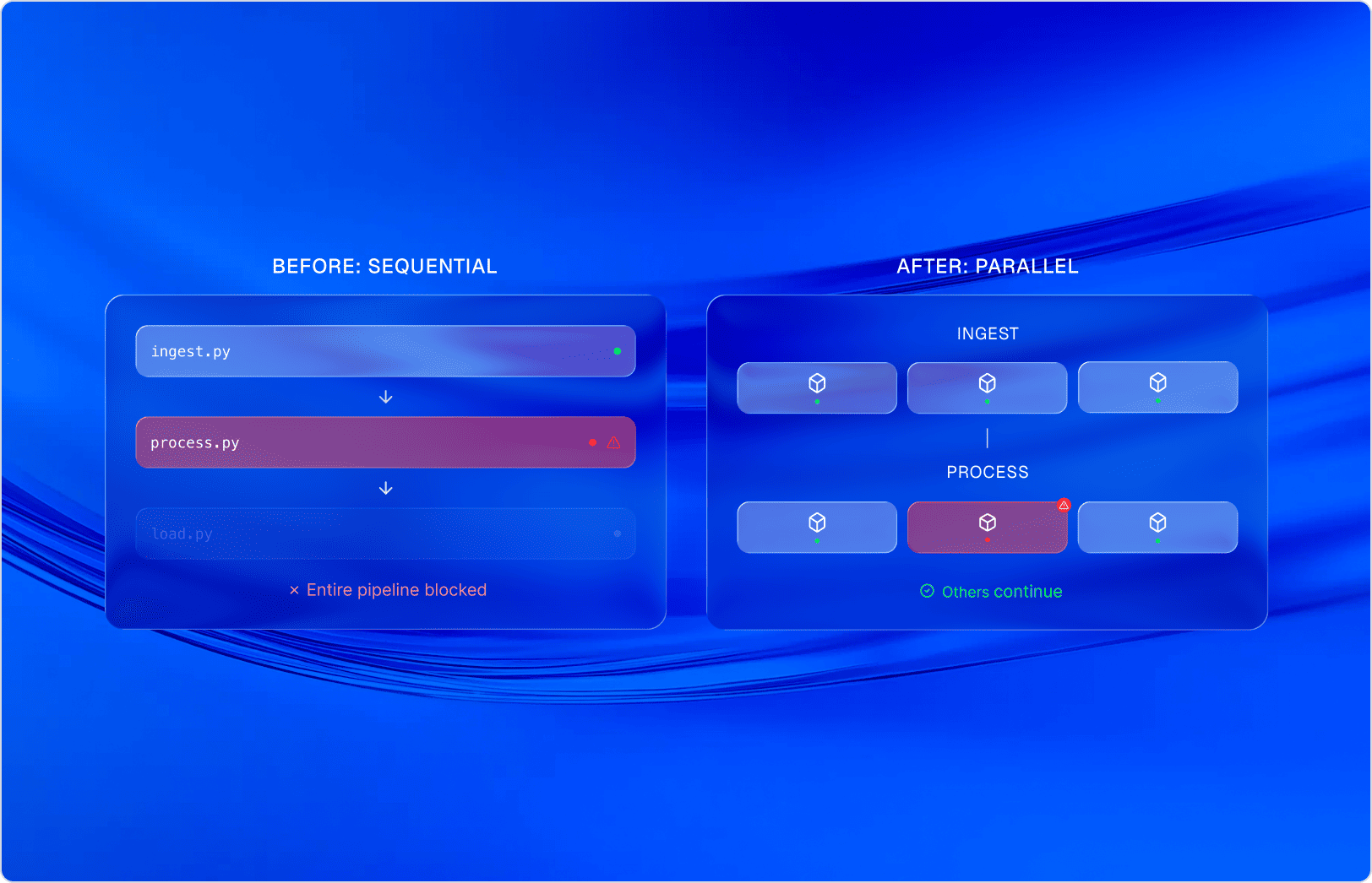 Standardized pipelines and agents reduce build-and-maintain burden. Scale up or down without hiring risk.