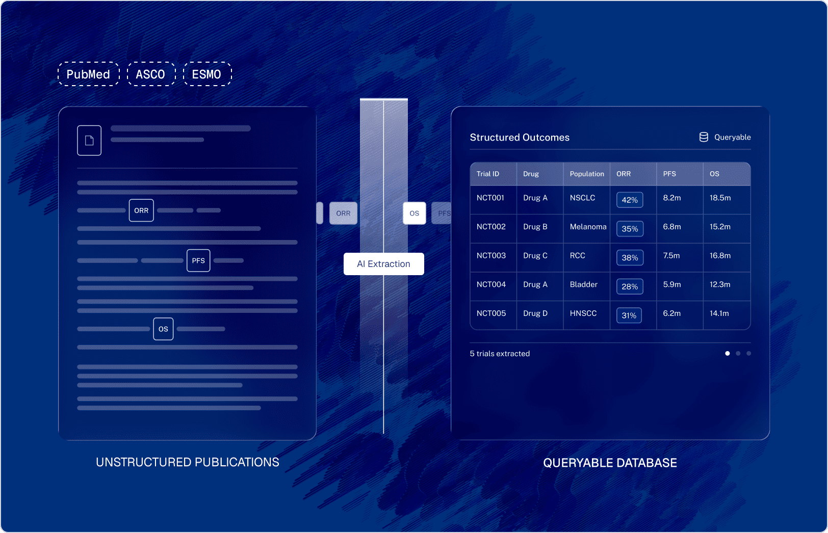 Embedded AI agents extract entities and relationships from unstructured pharma content into queryable, structured data.